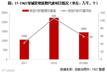 自2010年涉足代建以来,绿城管理先发优势明显,于2017年、2018年及2019年前三季度,实现新订约代建项目分别为43、106和59个,新订约管理总建面分别达到1060、2240以及1450万平。截至2019年三季度末,绿城管理合计拥有262个代建项目,管理总建面为6850万平,是代建行业的绝对龙头。