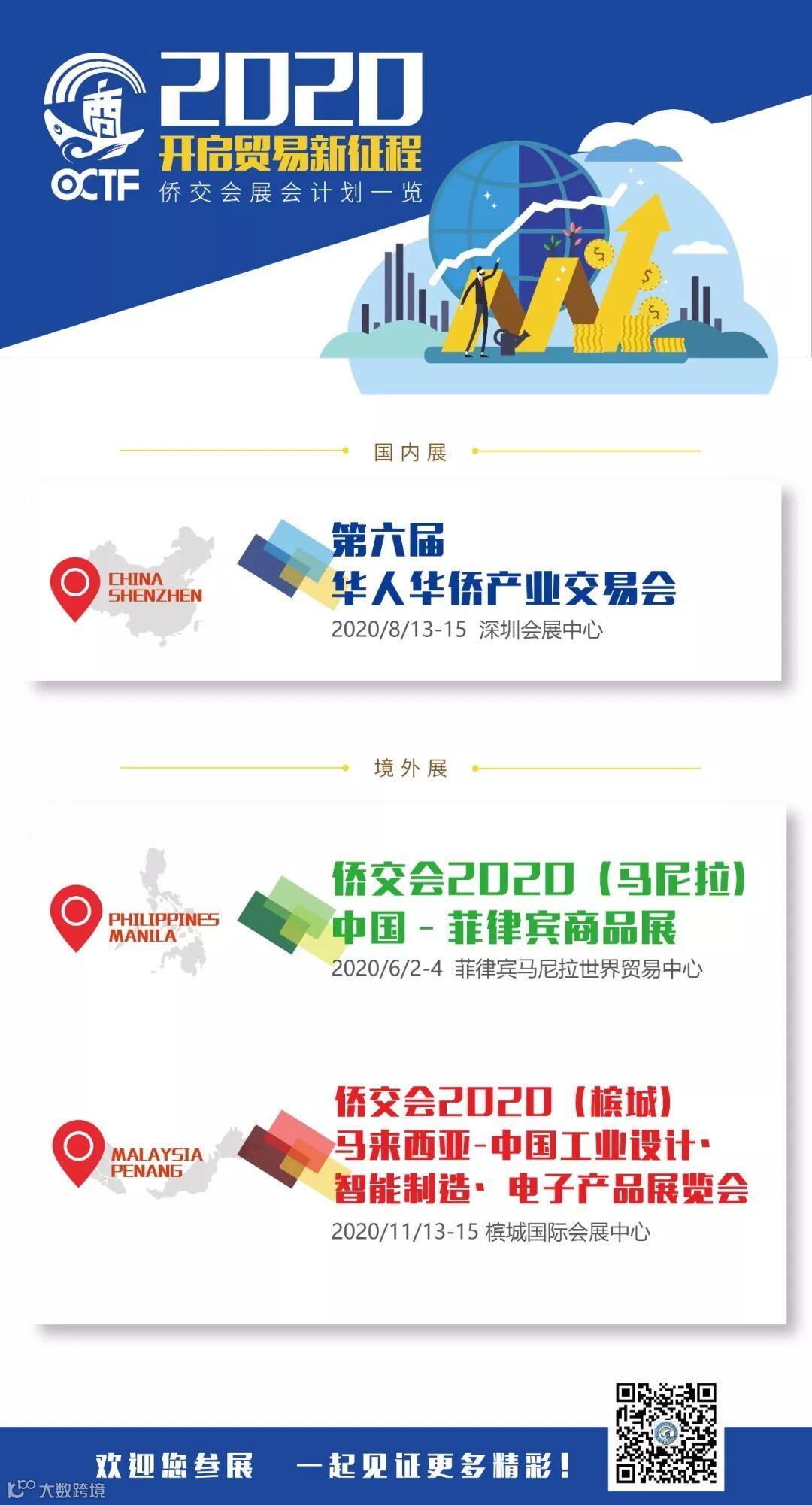 2020侨交会展览计划出炉,欢迎您报名参展。近五年来,侨交会在深圳连续举办了五届,累计吸引了全球40多个国家地区的企业参展,并在印尼雅加达、马来西亚马六甲连续举办了三届境外展,取得丰硕成果。以粤港澳大湾区建设和“一带一路”倡议为契机,侨交会汇聚更多国际创新资源和创新成果,持续打造高效、精准、专业的展会经贸平台,期待您的参与!