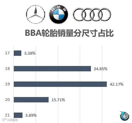 与普通品牌不同的是,豪华品牌普遍采用更大尺寸的轮胎,以提升车辆的整体驾驶感受和安全性。数据显示,18寸和19寸轮胎分别占据了34.85%和42.17%的市场份额,而21寸轮胎也得到了一定的应用,进一步彰显豪华品牌对大尺寸轮胎的偏好。