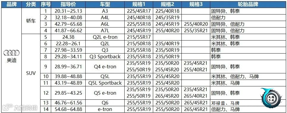 奥迪车型则偏重于在轮胎的静音性和抓地力之间找到平衡,以满足其豪华用户群体的需求。