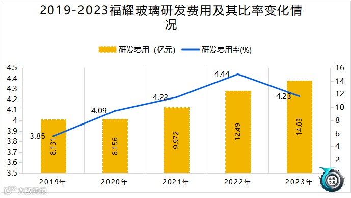 “福耀”持续加大研发投入,2023年研发费用达到14.03亿元。公司积极开发高附加值产品,如全景天幕和镀膜隔热玻璃,为未来收入增长开辟了新途径。高附加值产品收入占比已提升到56.17%。