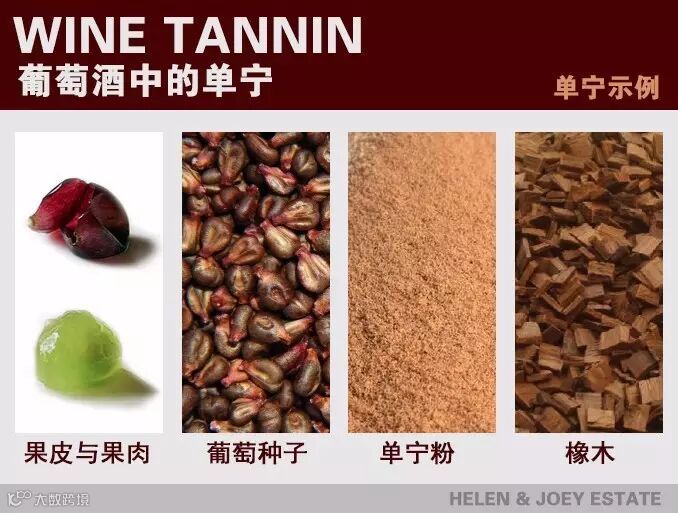 此外,如果葡萄酒经橡木桶处理,那么,葡萄酒还可能会从木桶那里获取一部分单宁。