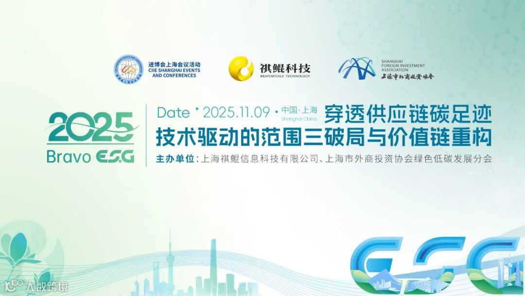 在11月9日2025年进博会上海会议活动中,由祺鲲科技与上海外商投资协会绿色低碳分会共同主办的“供应链碳足迹——技术驱动的范围三破局与价值链重构”研讨会上,来自世界500强、央国企、国际供应链示范企业的决策层共同探讨供应链减排的高效协同路径。虹桥国际中央商务区管委会党组成员、副主任杨旭波和上海外商投资协会副秘书长丁遂亮出席活动并致辞。