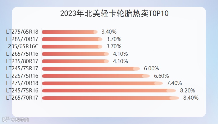 这些数据不仅展示了这些轮胎型号在北美市场的受欢迎程度,也为轮胎制造商和销售商提供了宝贵的市场洞察。随着轻卡市场的持续繁荣,我们有理由相信,这些热卖轮胎规格将继续保持其市场领导地位,并可能为相关企业带来更大的商业成功。
