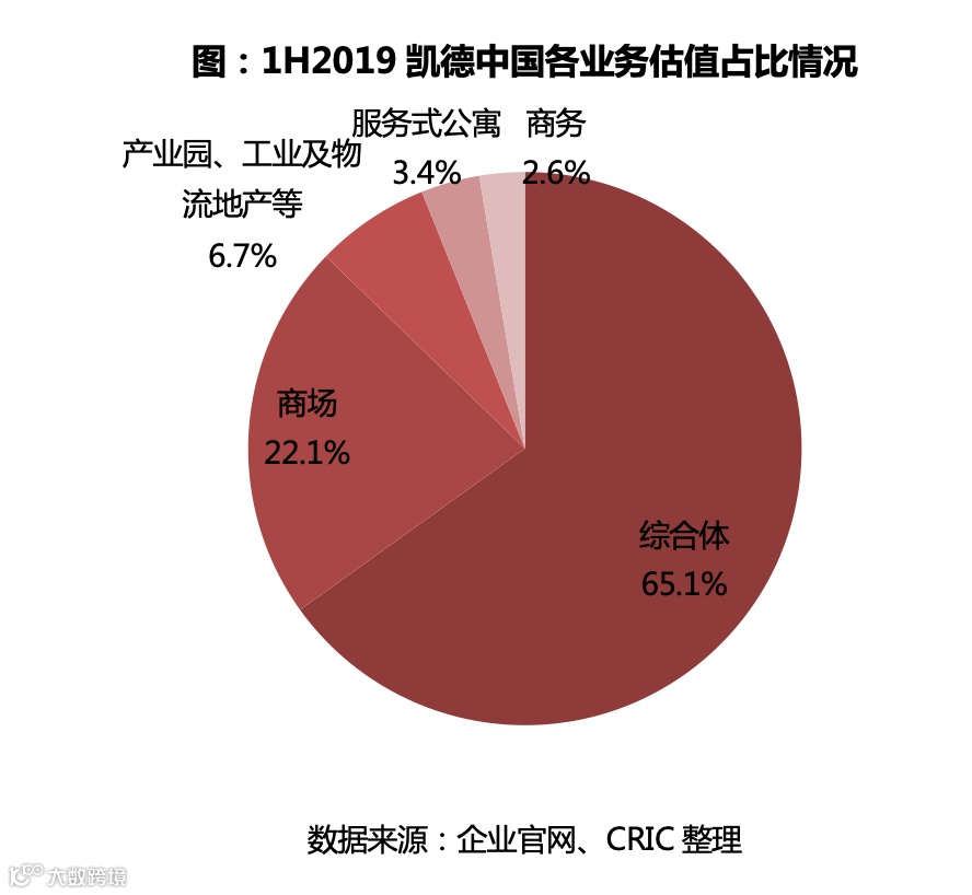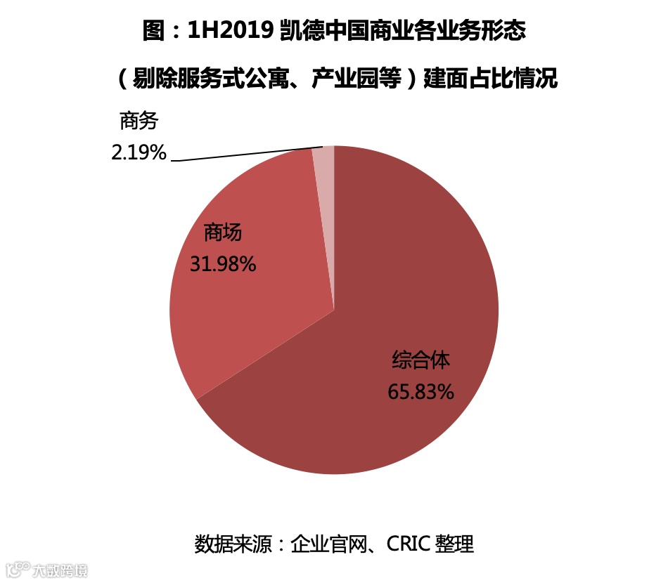 凯德于中国除住宅开发外的业态主要分为综合体、商场、服务式公寓、商务、产业园区、工业及物流地产等。从建筑面积来看,截至2019年上半年,凯德拥有/管理的综合体、商场以及商务办公项目(剔除服务式公寓、产业园等)建面共计966.32万方,分布于中国的项目建面为641.35万平方米,占比达到66.37%,其中综合体的建面为422.20万平方米,占比达65.82%,综合体建面占中国商业业务建面(剔除服务式公寓、产业园等)超过一半。