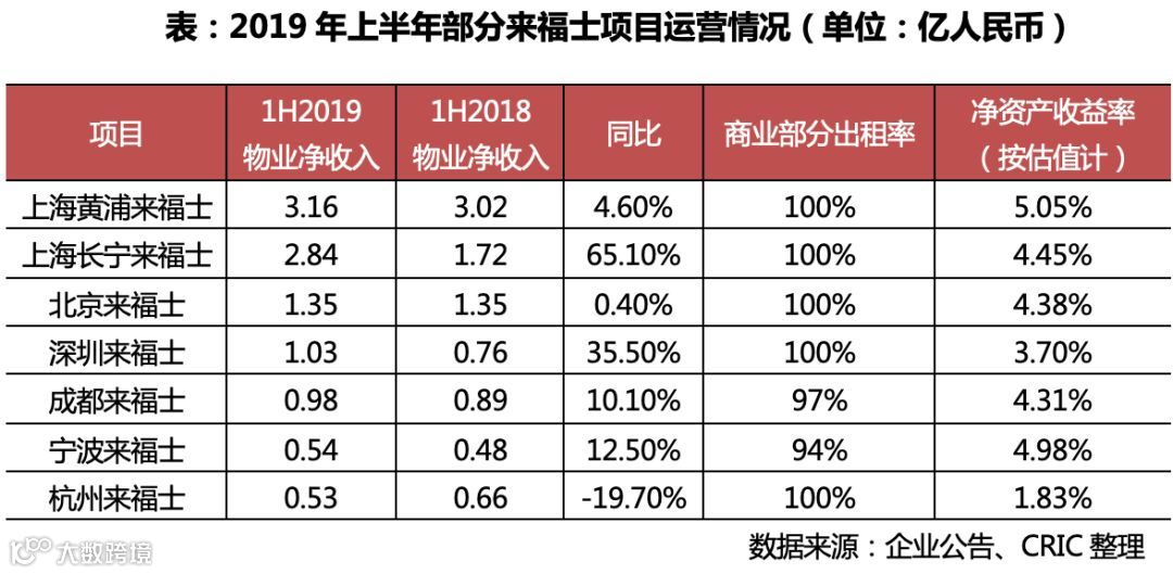 从部分来福士项目来看,2019年上半年凯德的上海黄埔来福士及上海长宁来福士的NPI分别为3.16、2.84亿元,其中上海长宁来福士NPI同比增长65%,增速最快;而上海黄浦来福士的净资产收益约为5.05%,比率最高。此外,杭州来福士项目的NPI出现同比下滑19.7%至0.53亿元,这主要是因为上半年NPI中包含了杭州来福士中服务式公寓及酒店两个新部分,从而包括了更多的运营成本;此外杭州来福士的净资产收益率仅约为2%,未来仍有待提升。从出租率来看,各来福士项目的出租率均十分良好,大部分项目的商业出租率都达到了95%之上,甚至为100%。由此可见,凯德旗下来福士及商场整体收益稳定,出租良好。