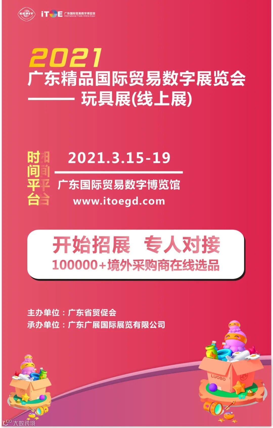 广东精品国际贸易数字展览会-玩具展(线上展),是广东省贸促会主办的国际贸易精品展览会系列展会,将于2021年春季在ITOE平台上举行(www.itoegd.com),届时将云集各类玩具、潮玩、IP授权及衍生品的玩具厂家及贸易商参与展示及交流。