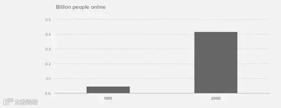 1. 十几年前,我们被 1995 年到 2000 年的网民数增长震惊,这一阶段网民数从 0.5 亿人增长到 4 亿人。