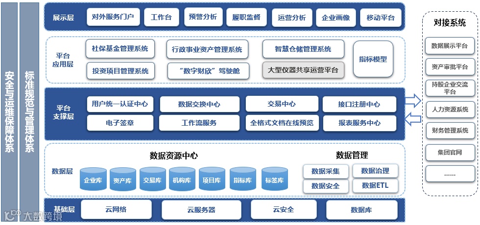 近期,国子软件和山东省财欣资产运营有限公司就“数字财欣”综合管理运营大数据平台和山东省行政事业单位大型仪器设备共享运营平台项目达成友好合作。国子软件不仅承接了平台的开发与实施工作,还参与运营工作,主要涵盖资产运营、大型仪器设备共享运营、数据资源管理等业务。国子软件将深度融合“大数据+IoT+人工智能”等技术,助力财欣数字化转型。