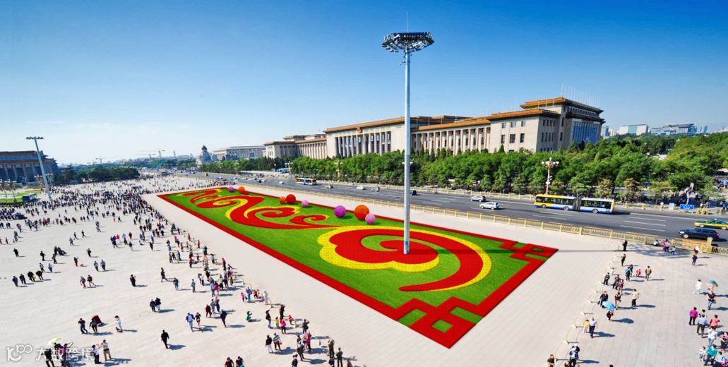 长安街双子座大厦布置“喜迎(庆)盛会”花坛