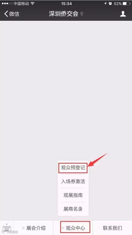进入公众号-->点击“观众中心”-->“观众预登记”