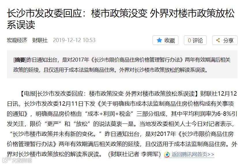 对此,长沙市有关人士还对此做出解释:楼市政策没变,外界对楼市政策放松系误读。