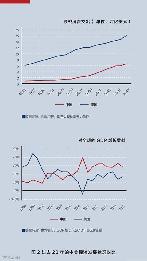 我们先讲一讲过去二十年的中国故事。从2006年起,中国对全球GDP的贡献率大大超过美国,也就是说全球五分之一的GDP增长,是由中国一个国家贡献的(见图2)。