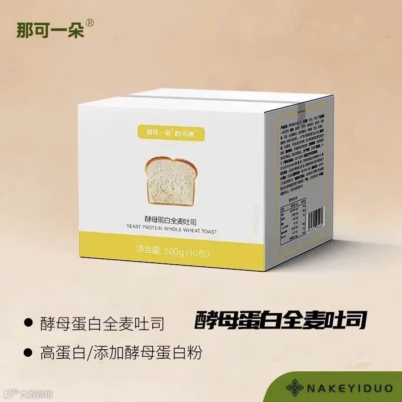 那可一朵在今年推出的酵母蛋白全麦吐司,含酵母蛋白粉、全麦粉和谷朊粉,总蛋白质含量高达20%,同时含有丰富的膳食纤维。