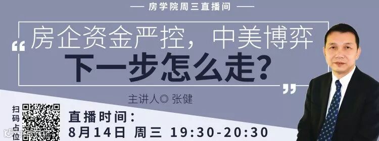 因此,我们将在下次的房学院周三直播间对此做深入的讨论。主题定为《房企资金严控,中美博弈,下一步怎么走?》,如果你对房地产及相关行业的趋势有兴趣,欢迎8月14日(下周三)晚上来听直播,错过也能听重播。