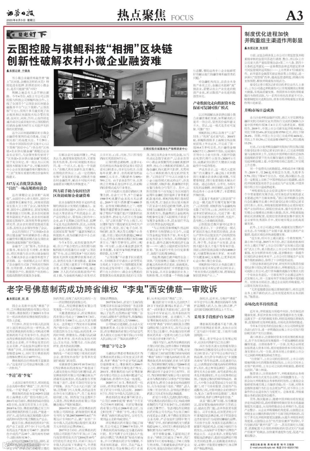 《证券日报》记者就祺鲲科技在助力“三农”发展上做出的探索及成果进行深度报道,并于2020年08月05日A3版上刊登报道《云图控股与祺鲲科技“相拥”区块链 创新性破解农村小微企业融资难》。