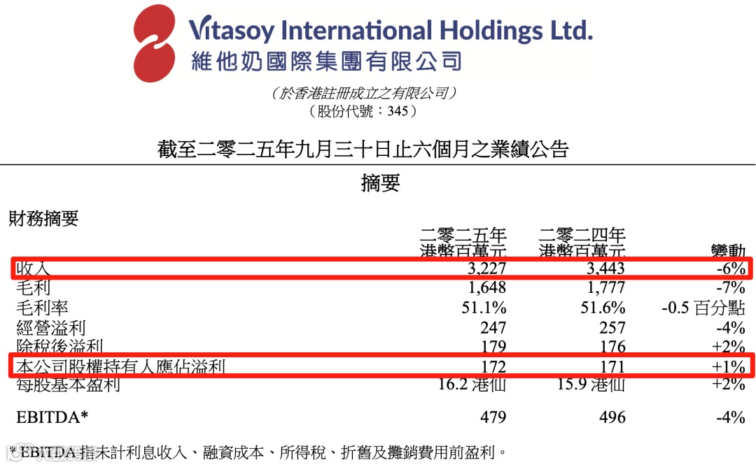 11月25日,维他奶国际集团有限公司(VITASOYINT'L,下称“维他奶国际”)披露截至2025年9月30日止6个月业绩。