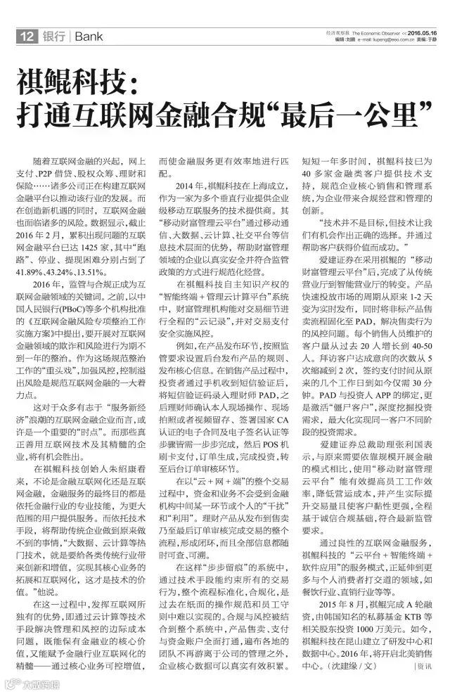 《线下交易“云记录” 祺鲲科技“精耕”财富管理业》