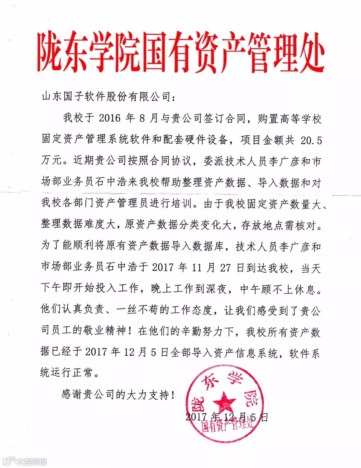 国子软件近日,国子软件连续收到用户单位寄来的表扬信。