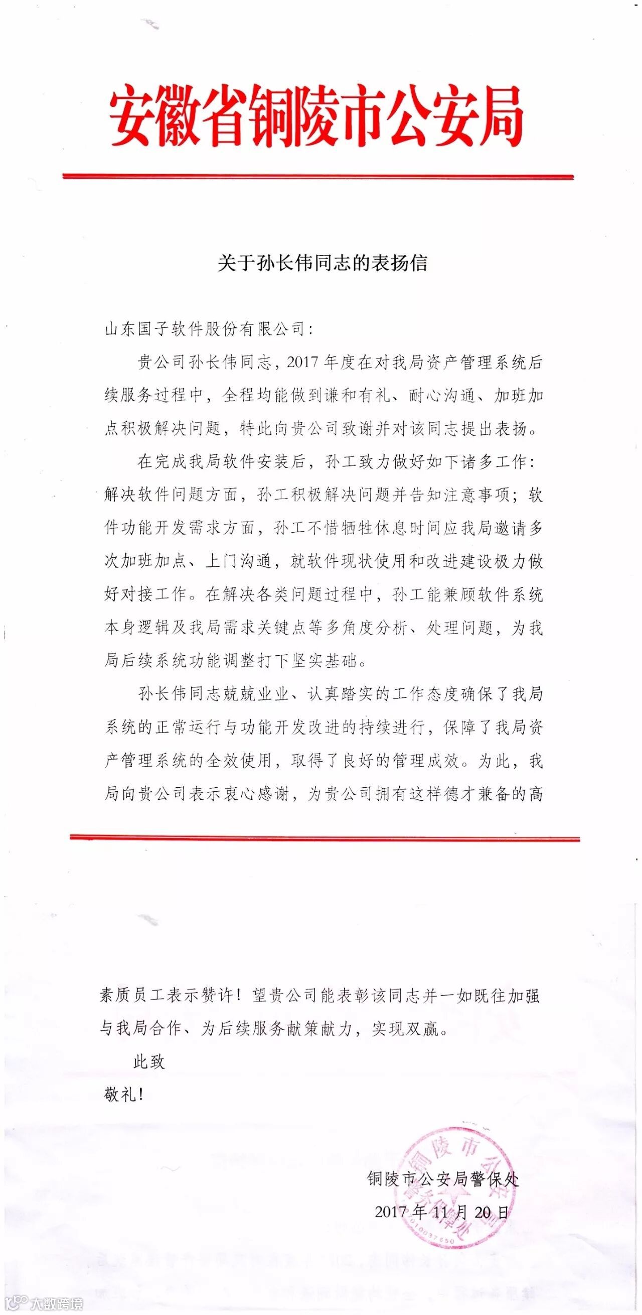近日,国子软件连续收到用户单位寄来的表扬信。