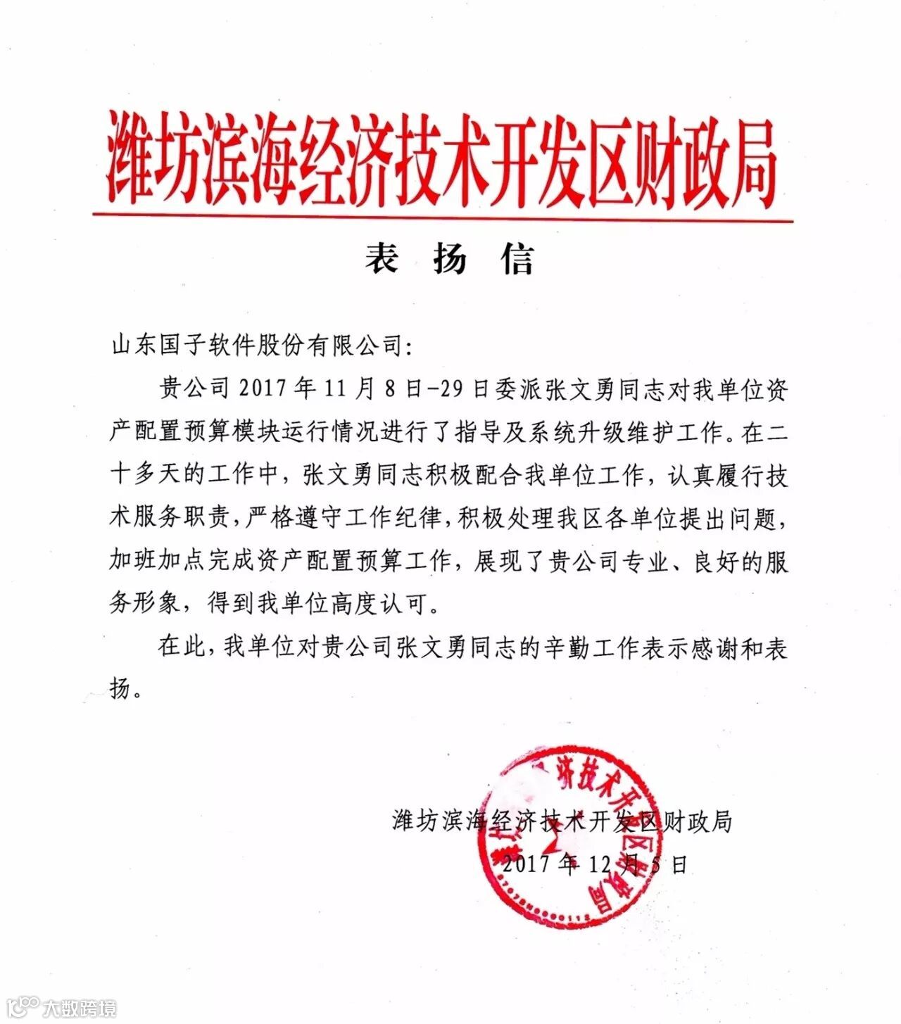 这是对国子软件“认真、严谨”服务水平的充分肯定,也是对服务工程师“专业、敬业”服务精神的高度赞扬,更是国子软件秉承“技术领先,服务至上”经营策略的最好体现。