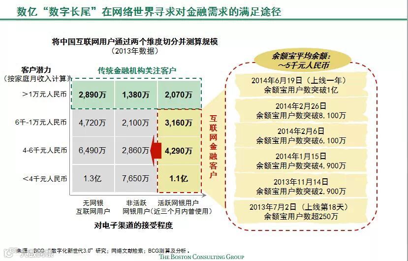 波士顿咨询(BCG)发布了第一份关于中国互联网金融市场的报告《互联网金融生态系统2020——新动力、新格局、新战略》,全面揭示互联网金融在中国取得快速发展的驱动力,提出并深入分析互联网金融的四大核心竞争领域及其对不同市场参与者的启示。