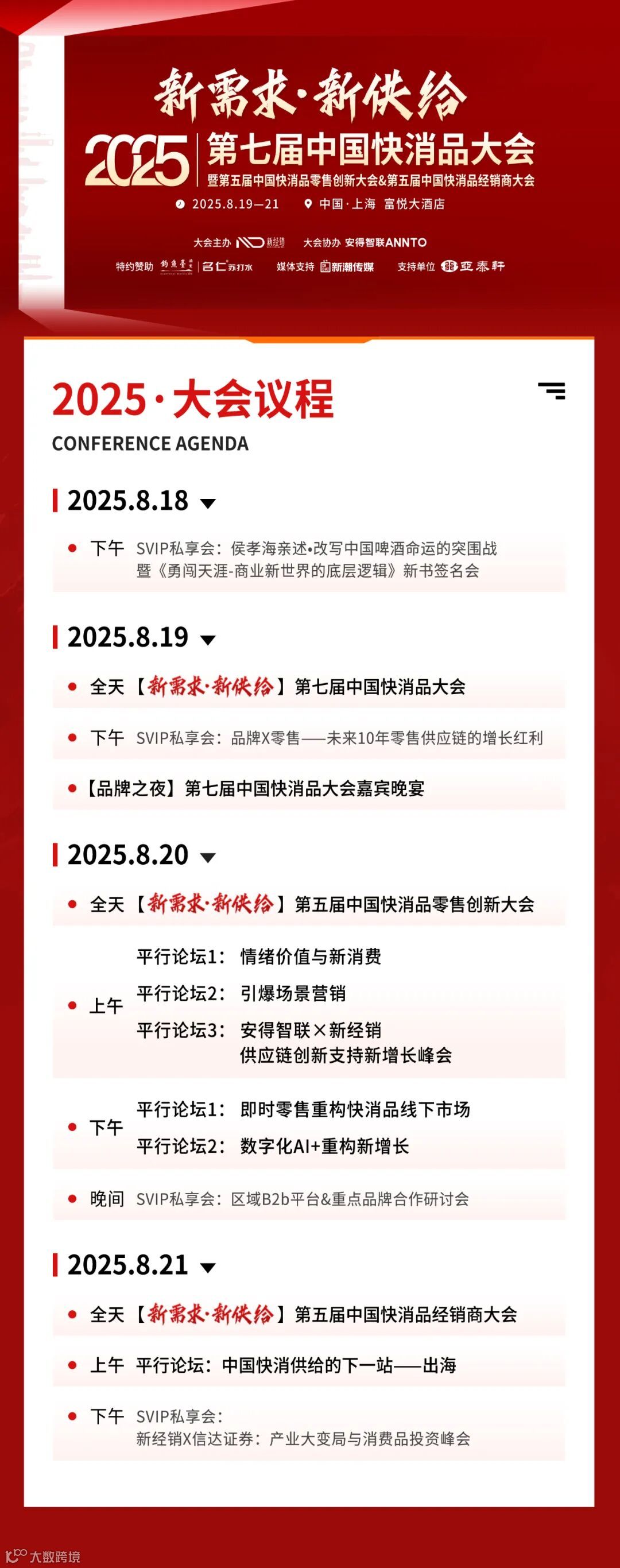 聚焦「即时零售重构快消品线下市场」「情绪价值与新消费」「引爆场景营销」「数字化AI+重构新增长」「中国快消供给的下一站:出海」五大前沿议题。