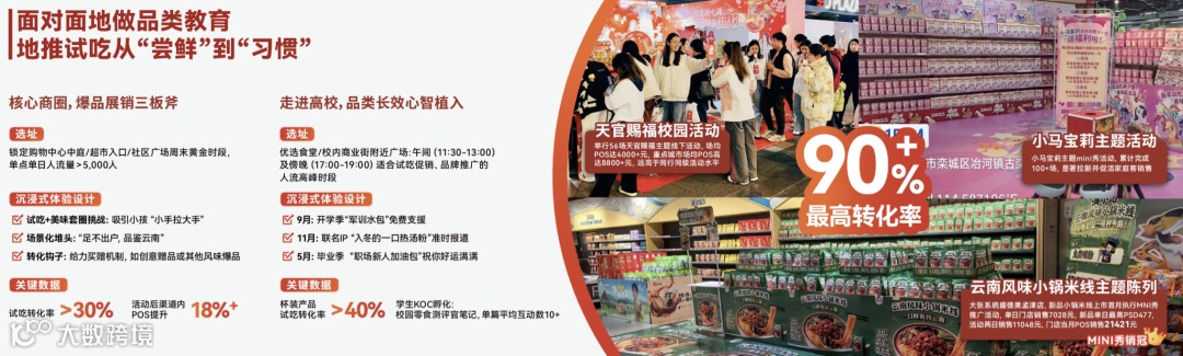 在线下渠道,满小饱采取“守正出奇” 的策略:敬畏成熟消费品公司的经验,同时组建专门团队,用 “地推试吃” 这种 “笨方法” 做品类教育 —— 让消费者先吃到第一包,再爱上这一口。这种直接的触达方式效果显著:线下推广最高转化率达90%,周末的 “迷你促” 活动,甚至能带动渠道次月销售额提升20%。
