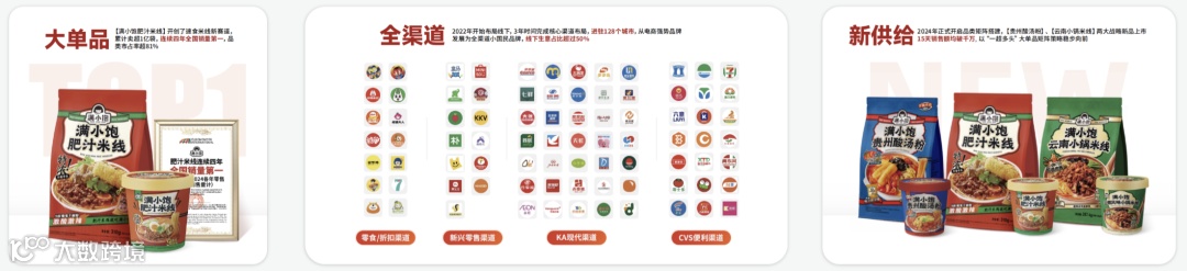而在产品端,满小饱也早已突破“单一大单品” 的局限:2024年新增的贵州酸汤粉、小锅米线两款产品,上市后自然销售15天内,累计销售额便突破1000万,印证了品牌在品类拓展上的实力。