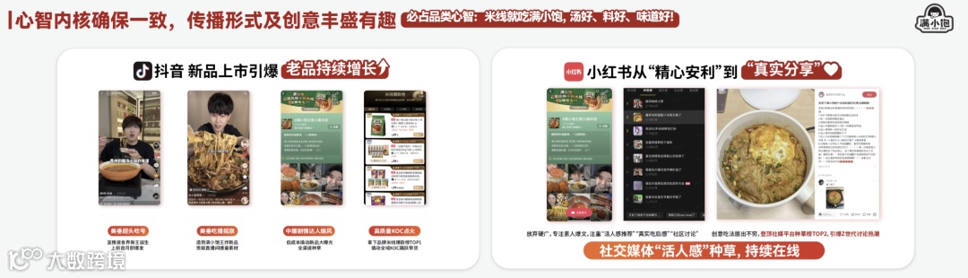 作为2020年成立的新锐品牌,满小饱早期沿用了 “双微一抖” 的传统传播路径,内容聚焦 “产品新颖奇特”,靠网红推荐引导消费,本质上是 “被动种草”,缺乏与消费者的深度价值链接。