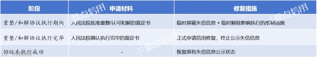 重整计划或和解协议执行完毕后,重整企业或管理人可以持人民法院确认重整计划或认可和解协议执行完毕的裁定书,向“信用中国”网站申请信用修复。