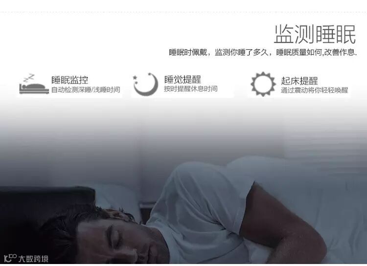 睡眠监测:也通过相同的传感器技术实现。人的睡眠按照脑电波信号可分为五个阶段:入睡期、浅睡期、熟睡期、深睡期、快速动眼期。在不同的阶段人的脑电波可以迅速改变,有意思的是,重力加速传感器并不具备直接探测脑电波的功能,所以它是将人在睡眠中动作的幅度和频率作为衡量睡眠的标准,来判断睡眠处于哪个阶段,手环的智能闹钟功能,会在快速动眼期将用户唤醒;因为在快速动眼期睡眠者会出现与清醒时相似的高频低幅的脑波,比较容易唤醒,如果此时唤醒,睡眠者会感到神清气爽,有一个很好的睡眠效果。