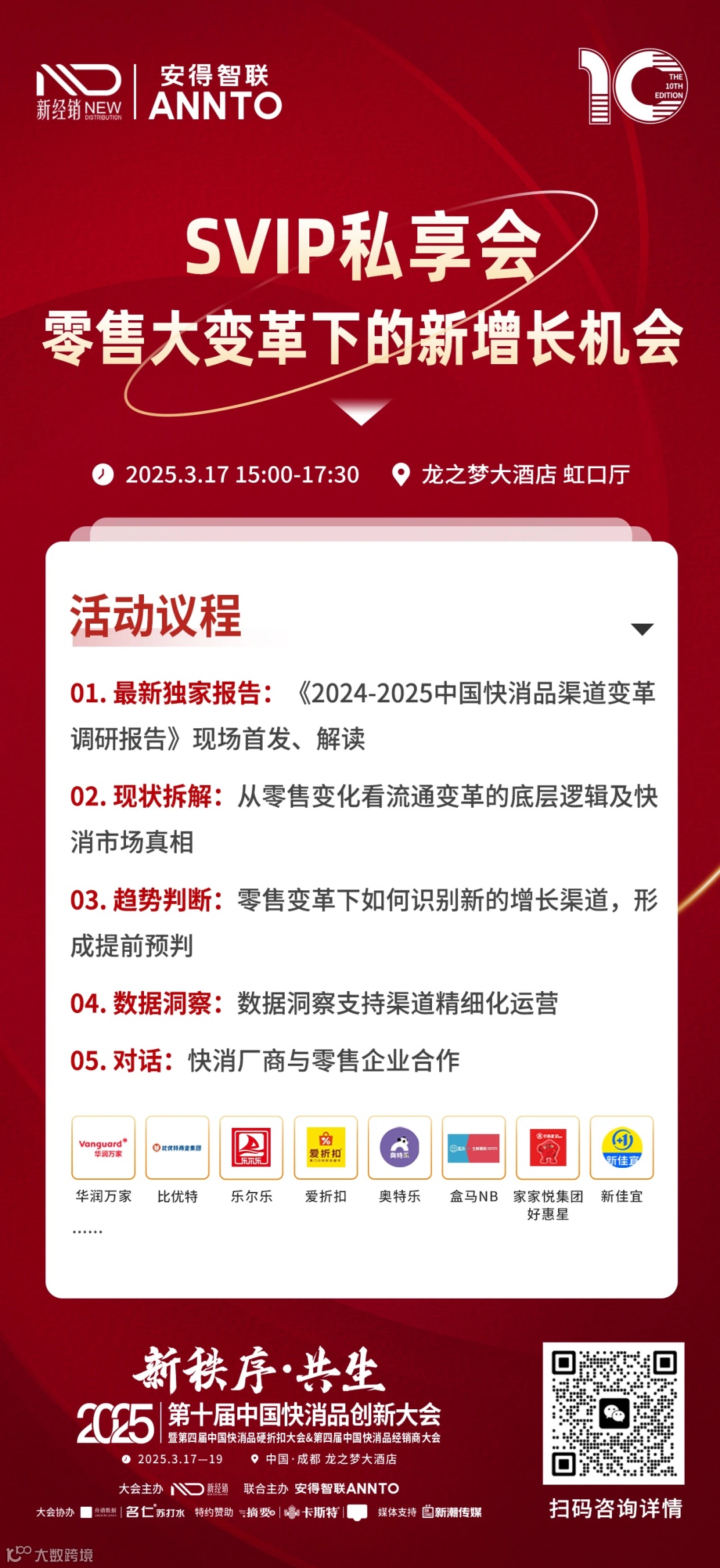 限于篇幅,这里只展示部分对零售变革的洞察内容。本报告将于3月17-19日,第十届中国快消品大会暨第四届中国快消品硬折扣大会&第四届中国快消品经销商大会,现场首发!