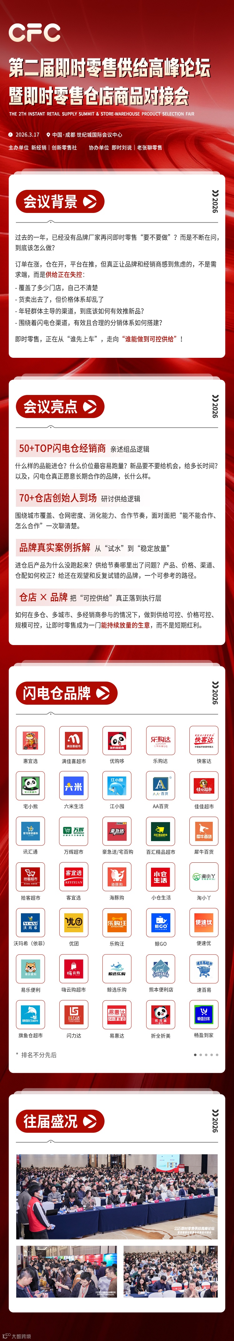 PS:2026年3月17日,成都我们将举办「CFC 第二届即时零售供给高峰论坛暨即时零售仓店商品对接会」
