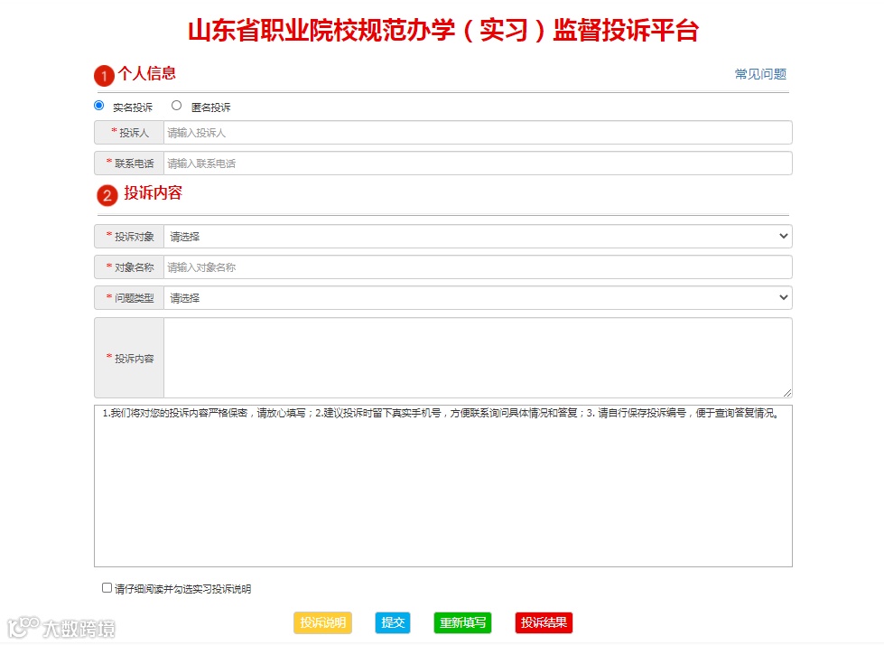 山东省教育厅于2016年专门印发了《山东省职业院校基本工作规范》(鲁教职发〔2016〕1号)文件,并按照教育部要求实施了职业院校规范管理三年行动计划,有力促进了全省职业院校实习管理水平的提升。为了进一步促进职业院校现代化治理水平和各项办学要素的全方位提升,山东省教育厅于2021年8月10号正式启动规范办学(实习)监督投诉平台。