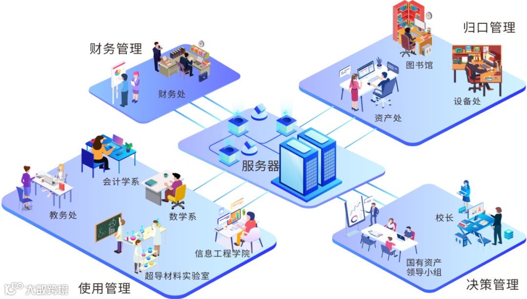 国子软件高校物联网资产管理平台,借助物联网技术,将传统资产管理与物联网技术进行智能化融合,力求打造一个资产信息化管理的全新时代,帮助各高校解决资产管理过程中的绩效难、共享难、实时掌握难、盘点难等问题。平台通过科学合理的管理规范与统一的信息化建设标准,集成各种先进、成熟的信息资源,统筹建设自动化、智能化资产管理平台,服务于高校资产的信息化管理。