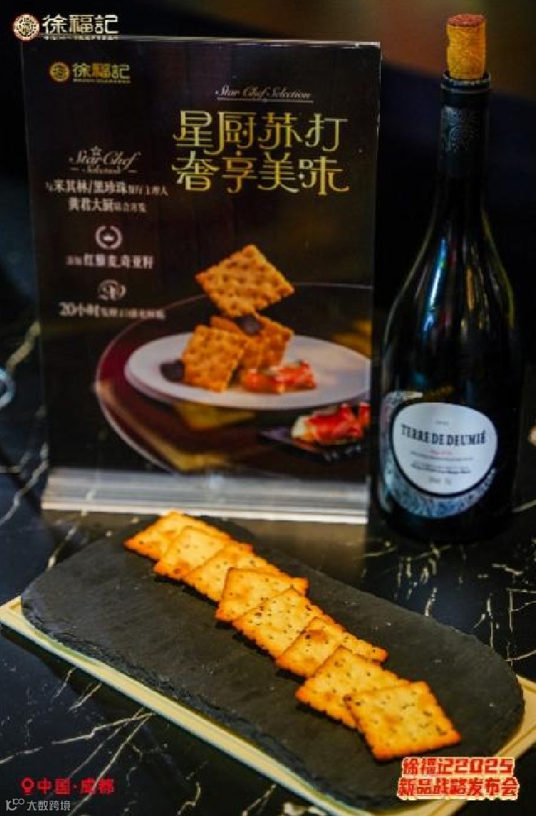 在饼干品类上,徐福记打造了具有高端品味的星厨系列,突围轻奢零食市场。特邀米其林、黑珍珠餐厅传奇主理人—黄君先生倾情加盟,匠心打造五大星厨餐厅流行风味苏打饼,海鲜脆饼系列和果仁脆片系列,选取高端食材加上星厨匠心的工艺,实现跨界升级,打造零食的创新味觉盛宴。