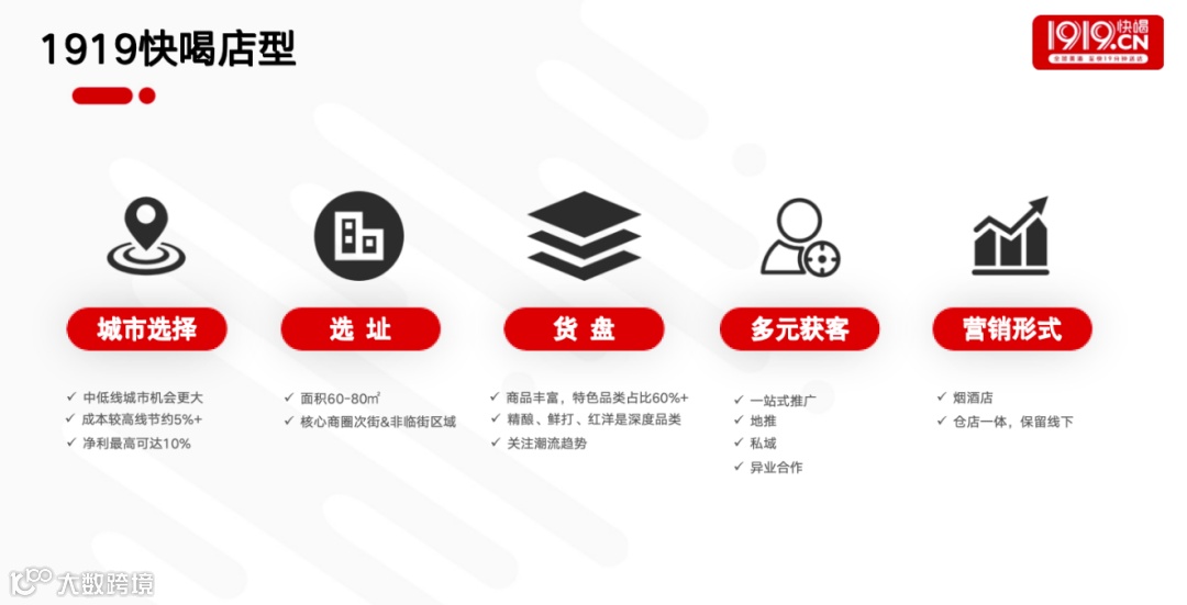 第三,我们总结1919快喝翻门头的店型,主要形式是五大方向。