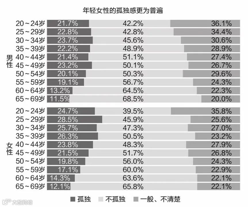 也就是说,在日本大约每5个人里就有1个人感到孤独,而在年轻女性中大约每4个人里就有1个人感到孤独。