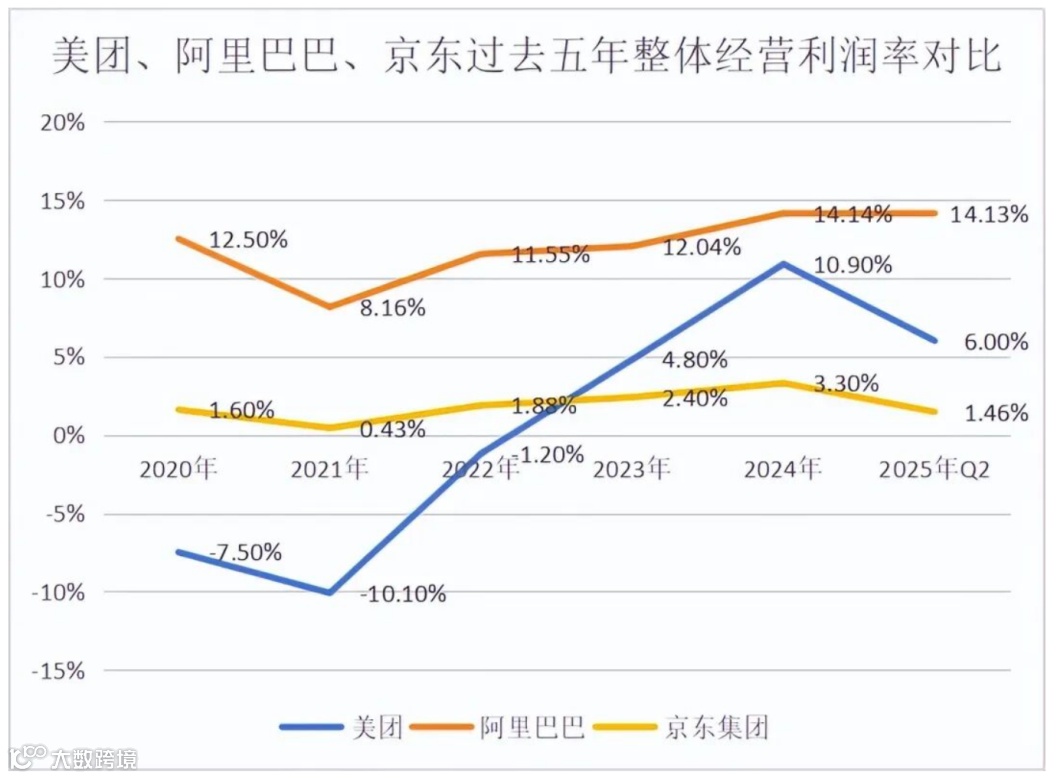 图片引自财经杂志,美团、阿里、京东往年利润率对比