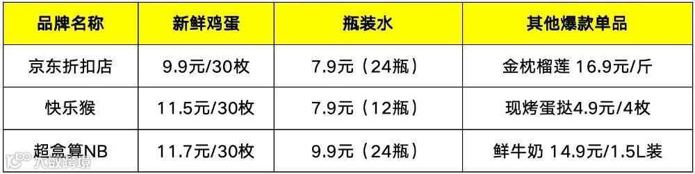 ,从几样基础单品的对比上能看出,京东便利店的折扣力度是三家中最大的,快乐猴与超盒算NB不分伯仲。值得注意的是,在快乐猴的官方口径中,其定价水平要比升级前的盒马NB要低10-30%。