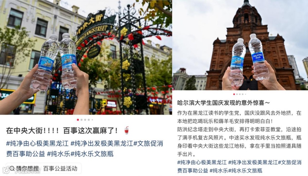 更有意义的是,这次纯水乐创新性地将“文旅+公益”结合在一起,通过“消费助善、公益助学、青年共创”三大行动,让每一瓶水都汇聚成一份爱心,也让更多年轻人以实际行动参与到黑龙江文旅与公益建设中。