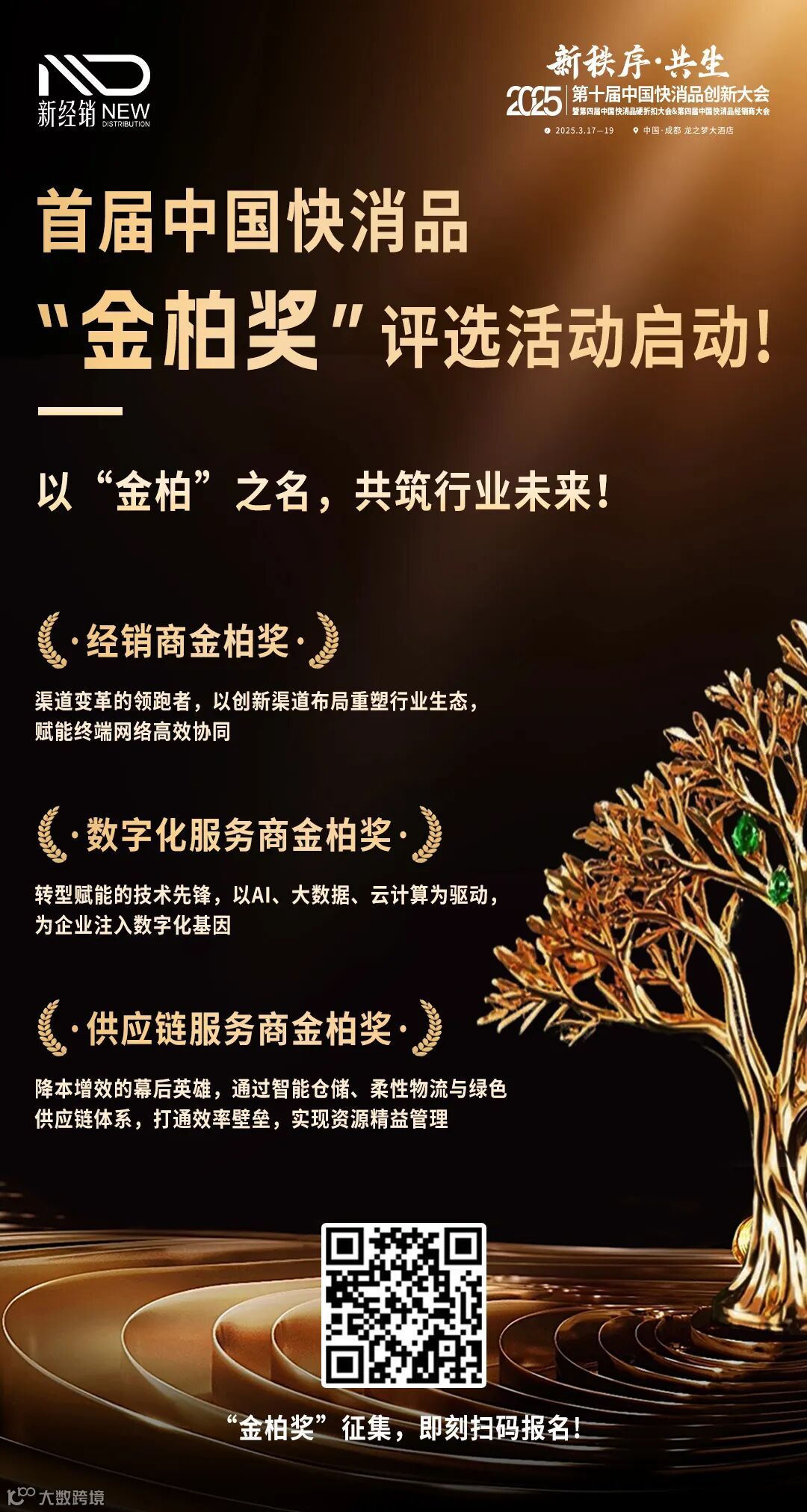 此次“金柏奖”评选活动,不仅是一场行业盛事,更是一次对快消品行业未来发展方向的深度探索与引领,表彰那些在行业周期性挑战中迎难而上、勇于创新的优秀企业。我们将以专业性、公正性为核心原则,分别颁发经销商、数字化服务商、供应链服务商三大类别,现征集通道已正式启动,欢迎优秀企业扫码报名。