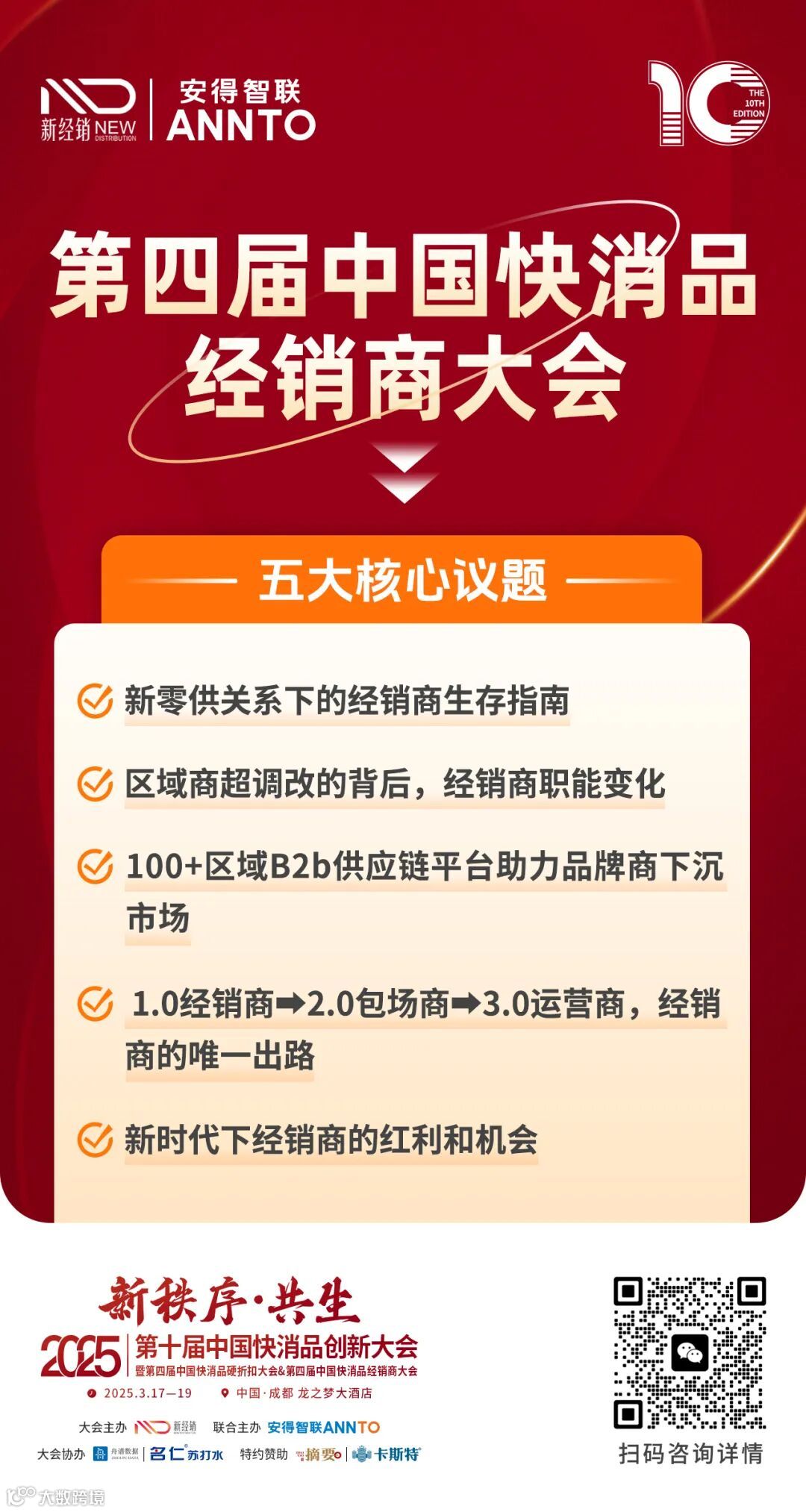 第四届中国快消品经销商大会,将汇聚600+全国标杆优秀经销商老板,全方位解读经销商在零售变革期下的生意指南,助力经销商在行业新秩序下重新确定自己的职能和位置。
