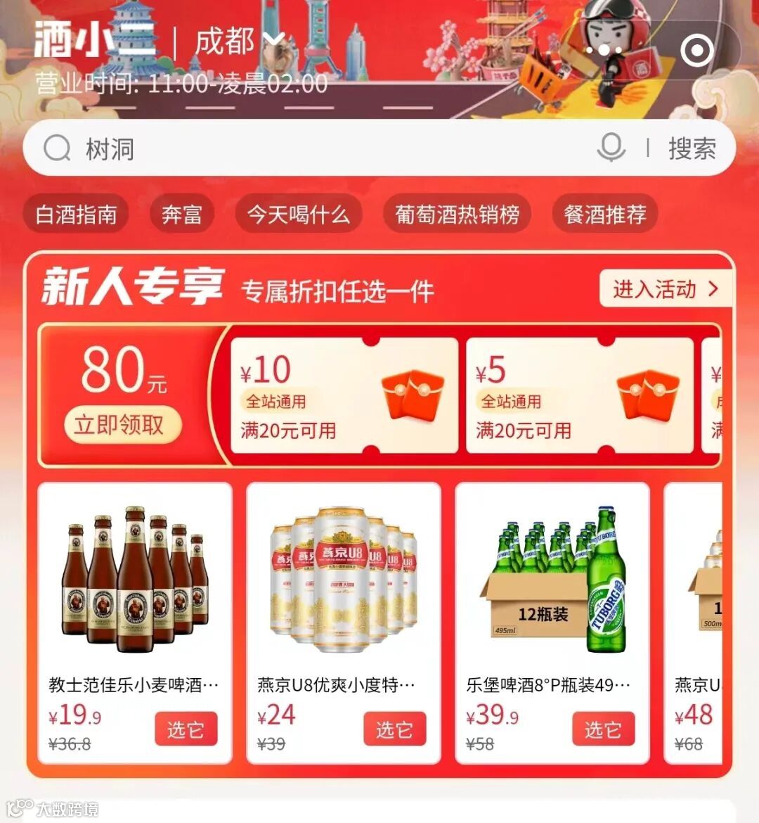 如今,盒马的30分钟冷链到家,酒小二、酒闪闪、歪马送酒等酒水速送服务已经成为不少消费者的选择,并且这些平台在近期还推出了各类补贴,抢夺市场。