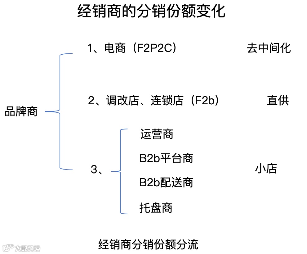 然而,从电商开始,本就弱小的经销商的分销份额逐渐被分流,未来流量将逐渐枯竭。