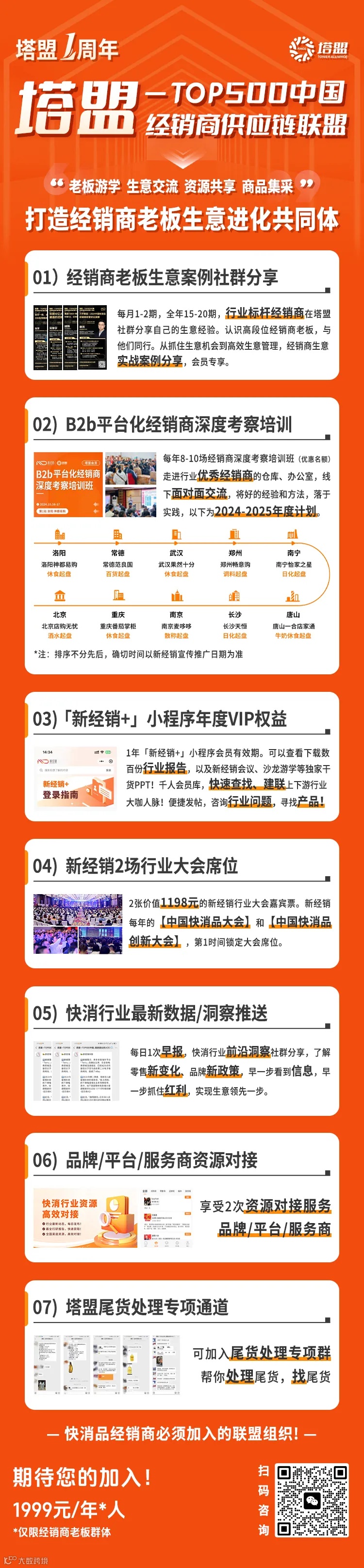 PS:为了更好助力经销商实现生意增长,在2023年6月我们成立了塔盟—TOP500中国经销商供应链联盟(简称“塔盟”)。