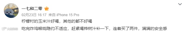 还有网友怀疑自己是桦树水饮料的受害者,推测其痛风复发可能和喝桦树水饮料有关。