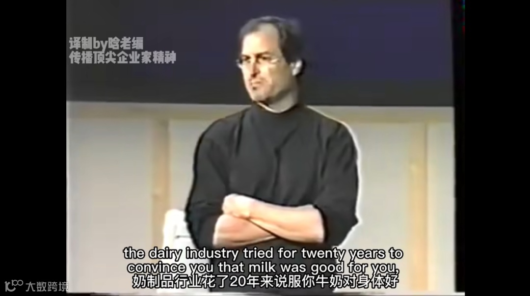 在演讲中乔布斯提到:“乳制品行业花了20年说服人们‘喝牛奶对你好’,他们尽力尝试了,但牛奶的销量是这样的(乔布斯做了一个向下滑的手势);然后他们推出了‘Got Milk’营销广告,销售才变成了这样(向上的手势)。