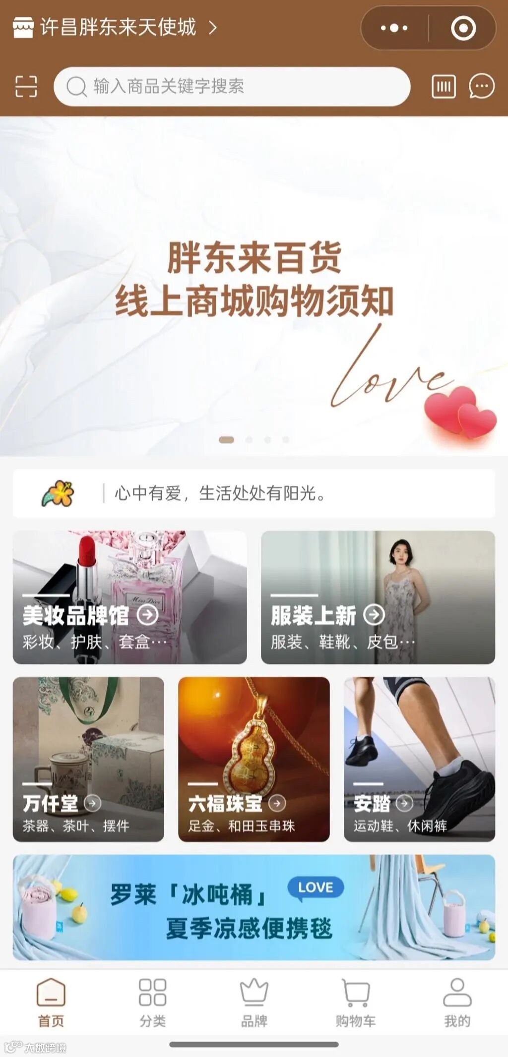 胖东来还有另一款微信购物小程序名为“胖东来百货”,主要提供所选门店内百货商铺的电商服务,比如天使城店的安踏、新乡店的海蓝之谜,而开通百货服务的仅有四家胖东来门店(许昌三家、新乡一家)。